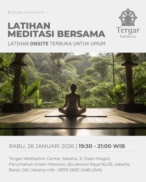 Mari mengawali tahun yang baru ini dengan memulai kebiasaan baru dengan belajar bermeditasi dan bagaimana meditasi dapat mengubah kehidupan Anda. Terbuka untuk umum dan bebas biaya Rabu, 7 Januari 2026 19:30-21:00 WIB Lokasi: Tergar Meditation Centre Jakarta. Alamat: Jl. Daan Mogot, Perumahan Green Mansion, Boulevard Raya No.35, Jakarta Barat Maps: https://goo.gl/maps/maVW3Y3upjbVouqm8 Info: * WA: 0878 …