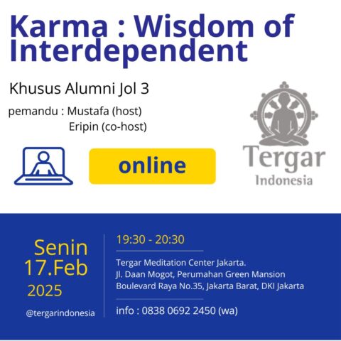 Diskusi dan Latihan meditasi JOL 3. Hanya untuk Alumni JOL 3. Senin, 22 Desember 2025, 19:30-20:30 WIB Dipandu oleh Anthony (Host) dan Arief (Co-host). Pendaftaran : 0878 0692 2480 (WA) Organized by: @tergarindonesia